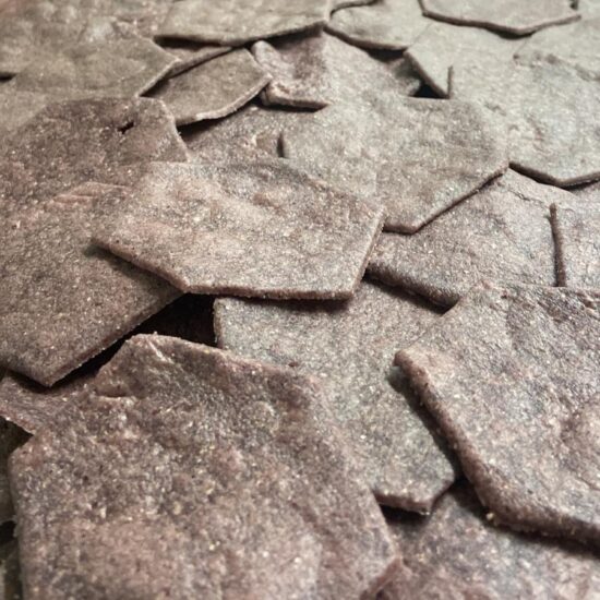 Producto sin gluten. 3-4 raciones (100 unidades) Tiempo de preparación: máximo 40 minutos utilizando el horno o el air fryer. Apenas 3 minutos en freidora. Talo-natxos de maíz negro ecológico, muy ricos y fáciles de digerir. Precocinados, listos para consumirlos en un plis.